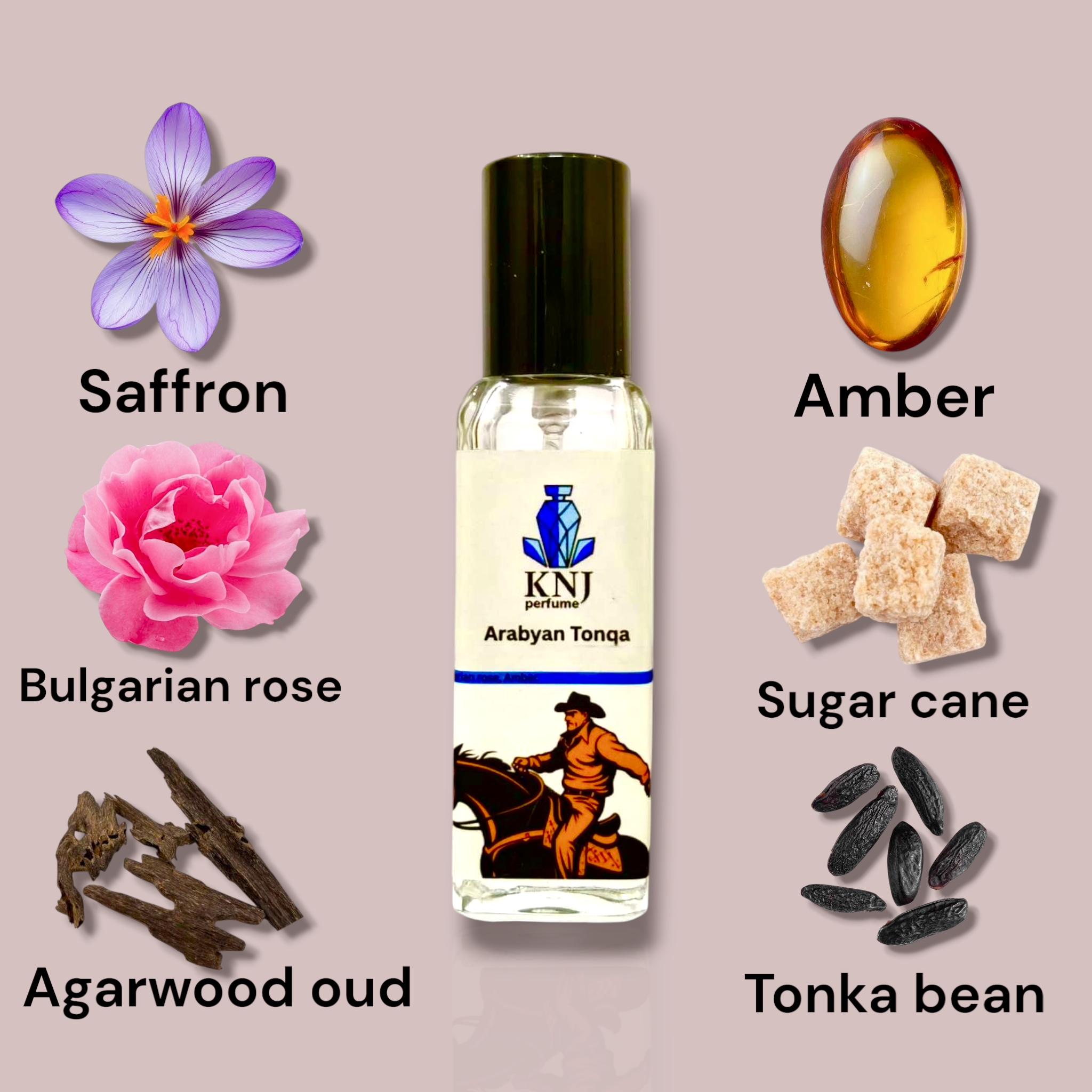 Arabyan Tonqa is a luxurious oriental woody fragrance inspired by Montale’s masterpiece. It opens with a radiant touch of saffron and bergamot, moves into a deep and elegant heart of agarwood (oud) and Bulgarian rose, and settles into a warm, long-lasting base of tonka bean, sugar cane, amber, white musk, and oakmoss. Designed for sophistication and elegance, this fragrance leaves a truly unforgettable trail.